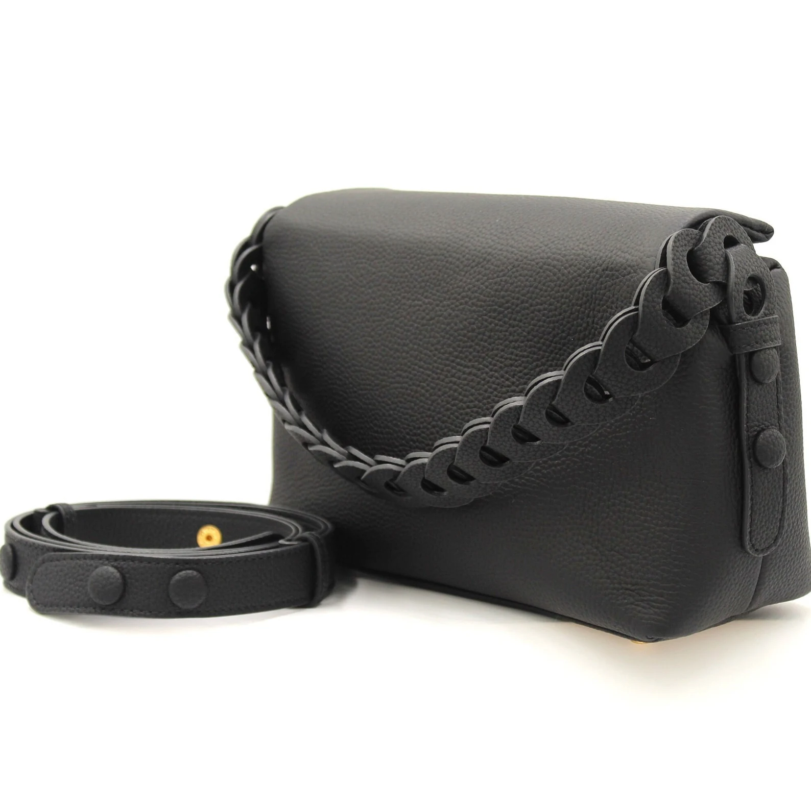 Two interchangeable straps provide styling versatility: a braided leather strap for an elevated, polished look and an adjustable plain strap for casual, hands-free comfort. Detailed stitching and polished edging highlight fine craftsmanship, making this crossbody perfect for everyday wear or travel.
